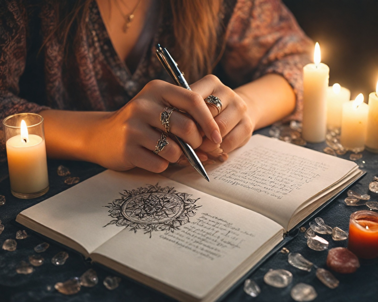Outra forma de integrar sigilos é através de diários mágicos ou boletins espirituais diários, onde você registra a criação dos sigilos e reflexões sobre sua eficácia e progressos. Manter um registro ajuda a monitorar o impacto das intenções e ajustá-las quando necessário.